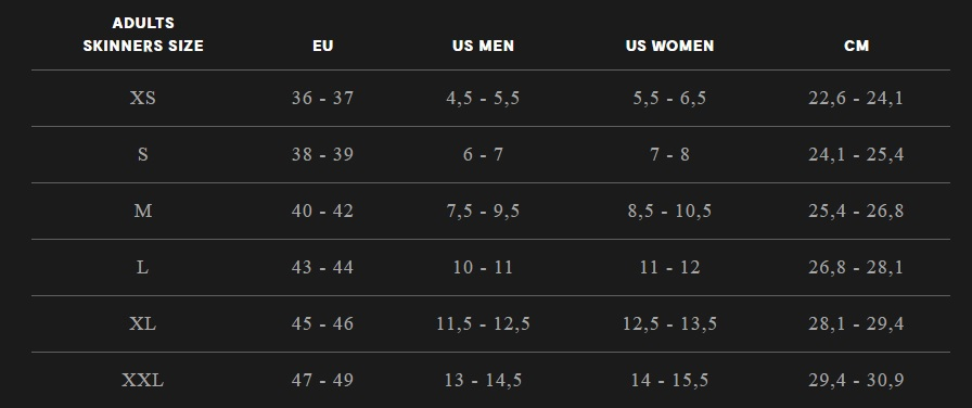 Ponožkotopánky Skinners sú uskutočnením sna o topánkach, ktoré strčíš do vrecka a v ktorých budeš mať príjemný pocit voľnosti. Doteraz sa používali ponožky len ako nutná izolačná vrstva pre pohodlnejšie obutie. Ponožkotopánky sú však ďalším evolučným krokom, ktorý robí z ponožiek plnohodnotnú športovú obuv.